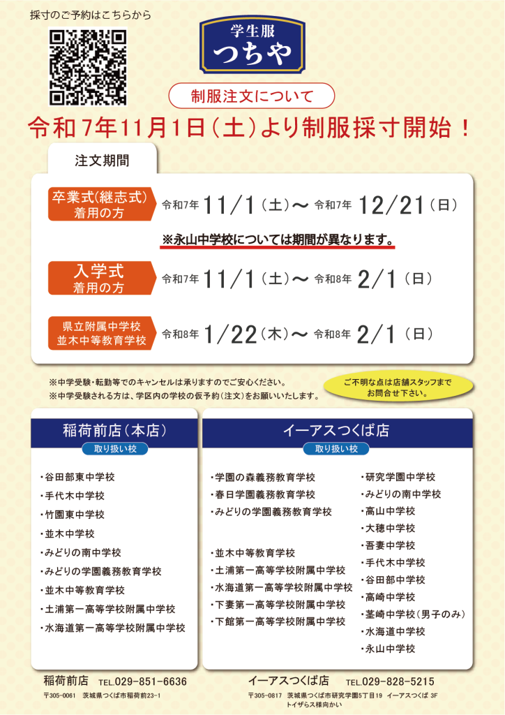 【予約受付中】中学校制服承り会 | 学生服のつちや