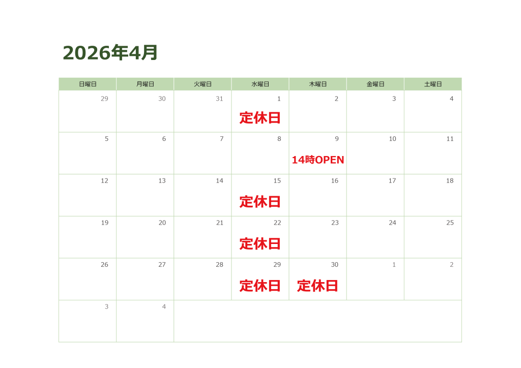 【稲荷前店】4月営業カレンダー
